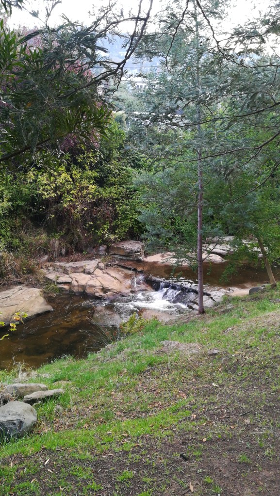 Dado que tinha passado a maior parte do dia sentada, inscrevi-me em mais uma das actividades sociais do meu hostel, o Platypus Walk & Talk, com a Sarah. A Sarah adora ornitorrincos e já descobriu alguns no Hobart Rivulet, um ribeiro na zona oeste da cidade. Lá seguimos nós junto ao ribeiro, sem sucesso. Mas valeu a pena pelo convívio e pelo passeio no simpático Hobart Rivulet Park. Demos meia-volta na histórica fábrica de cerveja Cascade e, durante o regresso ao centro da cidade, vi, pela primeira vez, pademelons, marsupiais aparentados dos cangurus!