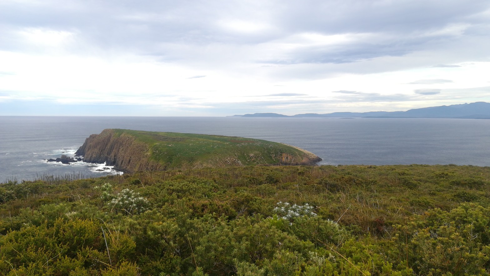 Depois, parámos no The Neck Lookout, sobre o estreito de terra que liga as regiões Norte e Sul da ilha. Que paisagem incrível! Se isto é lindo com nuvens, nem consigo imaginar como será com sol.