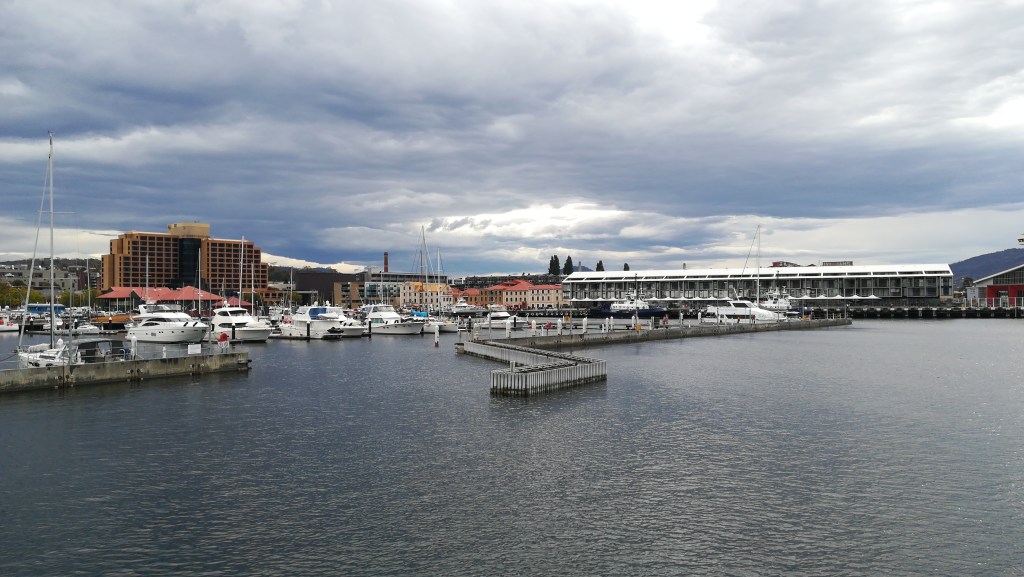 A marina de Hobart vista do barco