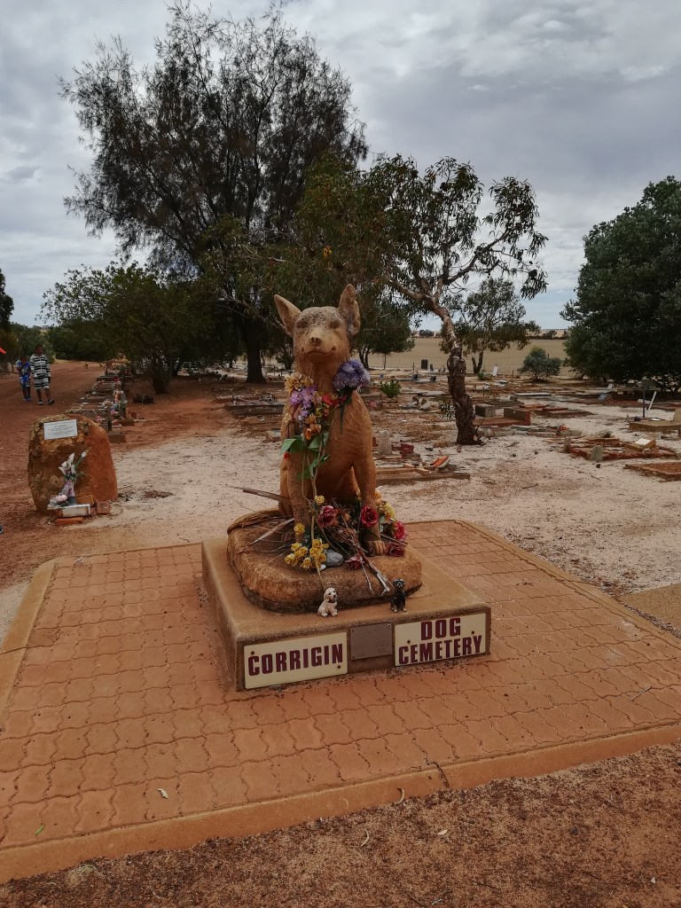 A seguir, parámos no cemitério canino de Corrigin. Foi interessante ver as campas, algumas muito elaboradas. E pareceu-me ver por lá uma campa humana (o que achei um pouco sinistro).